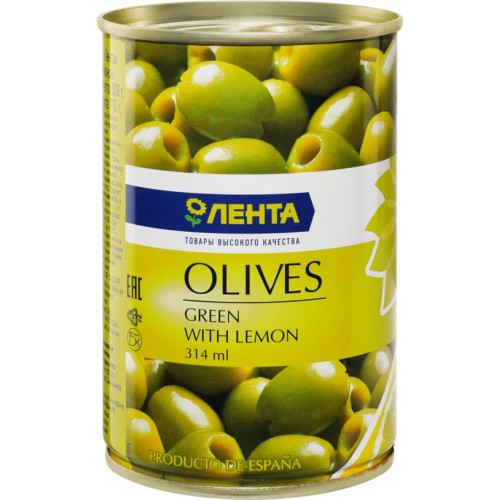 Оливки с лимоном ЛЕНТА зеленые, 314мл в магазинах Лента