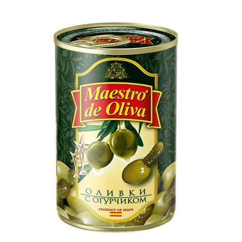 Оливки зеленые Maestro de Oliva на огурчике в оливковом масле, 300 г (kastd) в магазинах Ашан