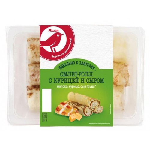 Омлет-ролл АШАН Красная птица с курицей и сыром, 150 г (kastd) в магазинах Ашан