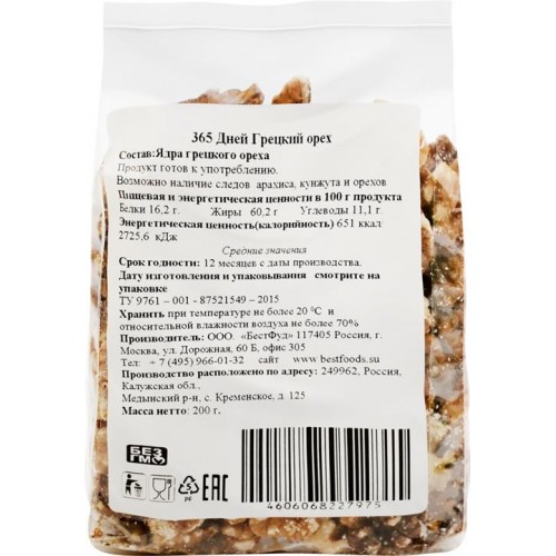 Орех грецкий 365 ДНЕЙ сушеный, 200г в магазинах Лента