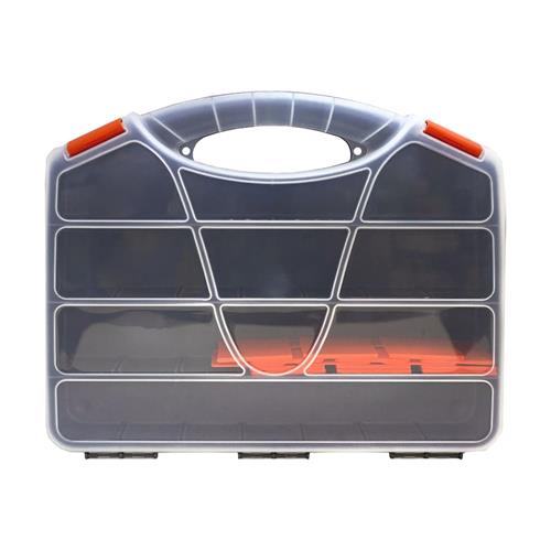 Органайзер размером 32 см представляет собой практичный и удобный чемоданчик с ручкой, предназначенный для хранения различных мелочей. Он идеально подойдет для строительных крепежных элементов, рыболовных крючков, а также швейных принадлежностей. В комплекте с органайзером поставляются разделители, которые позволяют самостоятельно определить количество и размеры требуемых ячеек.