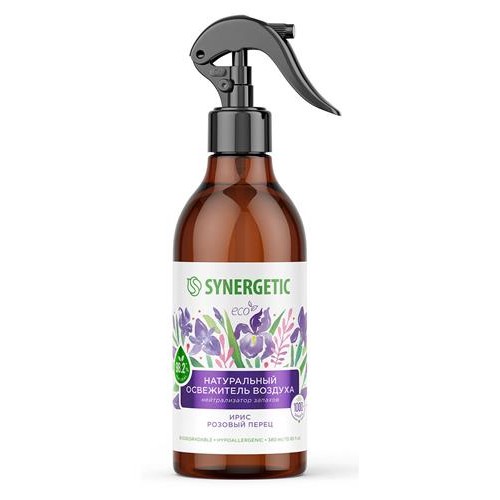 Освежитель воздуха Synergetic Ароматический гипоаллергенный Ирис и розовый перец, 380 мл (kastd) в магазинах Ашан