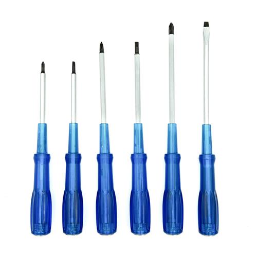 В состав набора входят прямые отвертки SL4, SL5 и SL6, а также крестовые отвертки PH1, PH2 и PH3. Все отвертки изготовлены из углеродистой стали, что обеспечивает их прочность и долговечность. Ручки отверток выполнены из ПВХ, что обеспечивает надежный захват и удобство в работе.