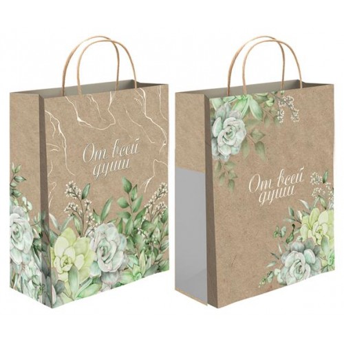 Пакет бумажный подарочный Суккуленты крафтовый, 20х24 см (kastd) в магазинах Ашан