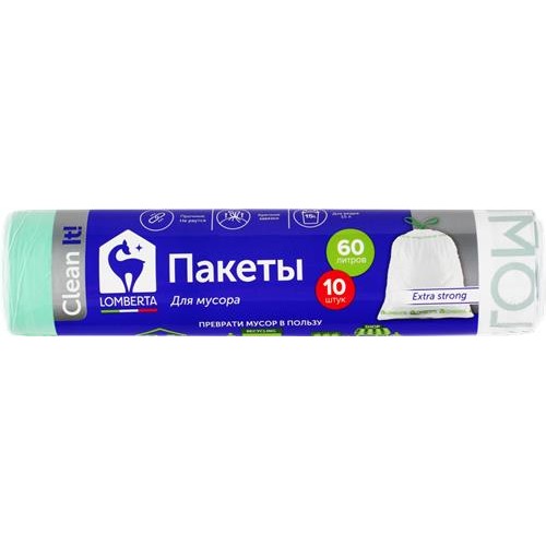 Пакет для мусора LOMBERTA с принтом, с затяжкой, 60л, Арт. 721529, 10шт в магазинах Лента