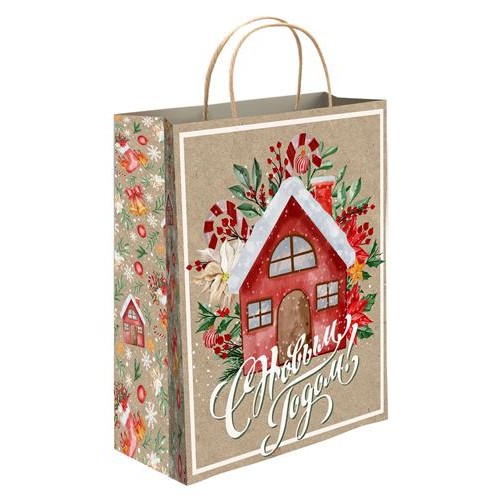 Пакет подарочный бумажный крафт Колокольчики, 20х24 см (kastd) в магазинах Ашан