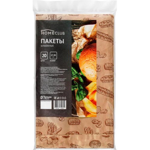 Пакеты бумажные HOMECLUB Promo 17х30см, 20шт в магазинах Лента