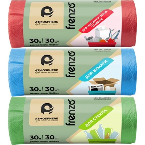 Пакеты для мусора ATMOSPHERE 30л, для раздельного сбора, в ассортименте, 30шт в магазинах Лента