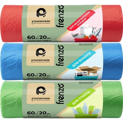 Пакеты для мусора ATMOSPHERE 60л, для раздельного сбора, в ассортименте, 20шт в магазинах Лента