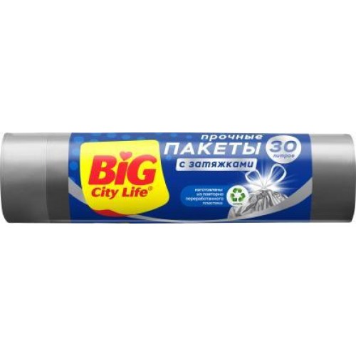 Пакеты для мусора Big City с затяжками 12мкм 30л 15шт в магазинах Магнит