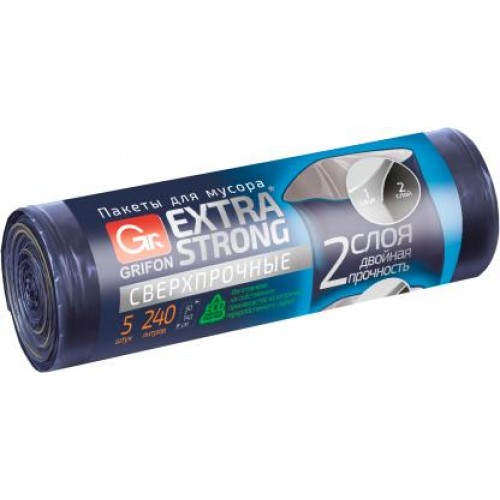 Пакеты для мусора Grifon прямые ПВД 40мкм 240л 5шт в магазинах Магнит