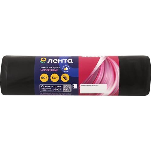 Пакеты для мусора ЛЕНТА 90л, усиленные, 5шт в магазинах Лента