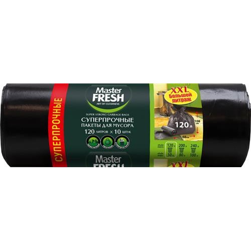 Пакеты для мусора MASTER FRESH XXXL суперпрочные 120л, черные, 10шт в магазинах Лента