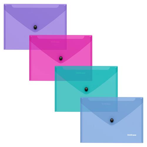Папка-конверт на кнопке ErichKrause Glossy Vivid пластиковая полупрозрачная, C6 (kastd) в магазинах Ашан