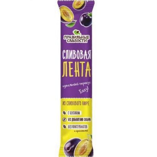Пастилки «Правильные сладости» Сливовая лента - это натуральный и вкусный продукт, изготовленный на основе фруктового пюре без добавления сахара, красителей и ГМО. Фрукты для производства пастилок выращиваются в экологически чистых условиях и перерабатываются на современном производстве.