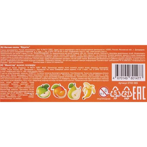 Пазлы мягкие EL'BASCOKIDS в ассортименте, Арт. ET02-001-006 в магазинах Лента