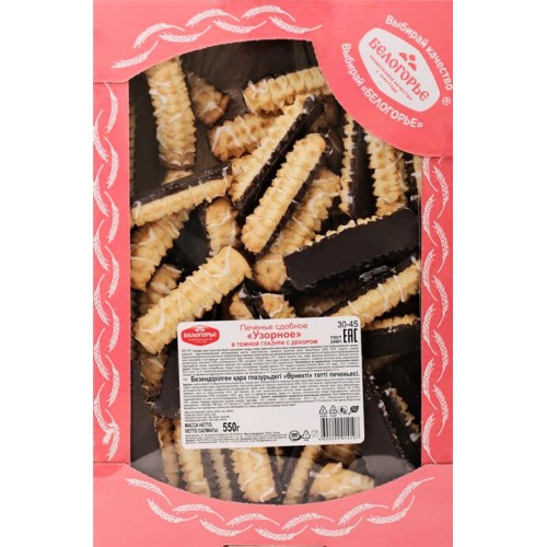 Печенье БЕЛОГОРЬЕ Узорное в темной глазури с декором, 550г в магазинах Лента