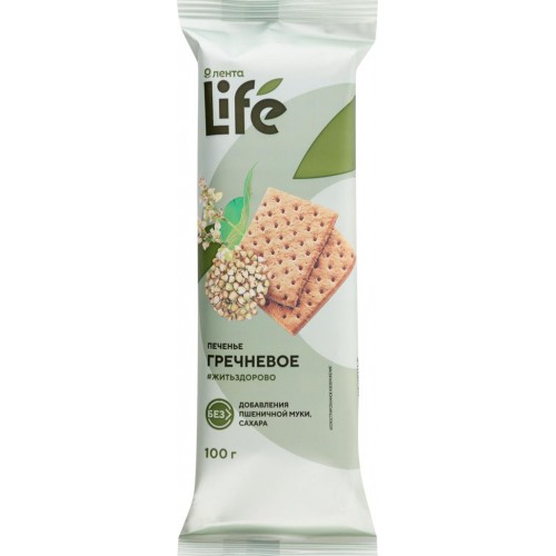 Печенье безглютеновое ЛЕНТА LIFE Гречневое, из зеленой гречки, 100г в магазинах Лента