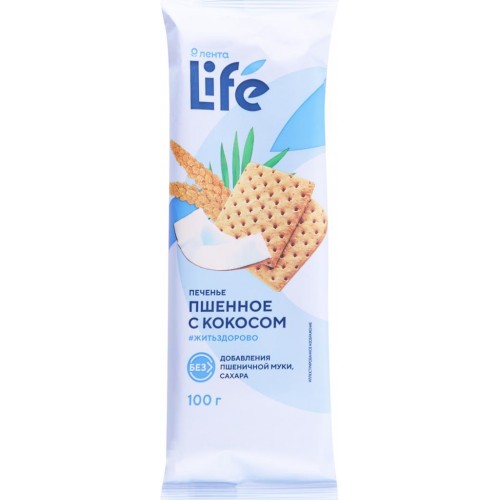 Печенье безглютеновое ЛЕНТА LIFE Пшенное с кокосом, 100г в магазинах Лента