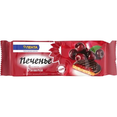 Печенье бисквитное ЛЕНТА с желейной начинкой со вкусом вишни, 137г в магазинах Лента