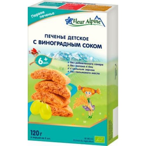 Печенье Fleur Alpine детское с виноградным соком без сахара с 6 месяцев 120г в магазинах Магнит