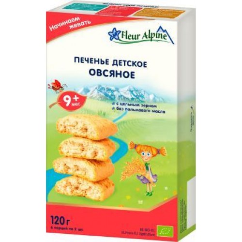 Печенье Fleur Alpine Organic овсяное растворимое с 9 месяцев 120г в магазинах Магнит