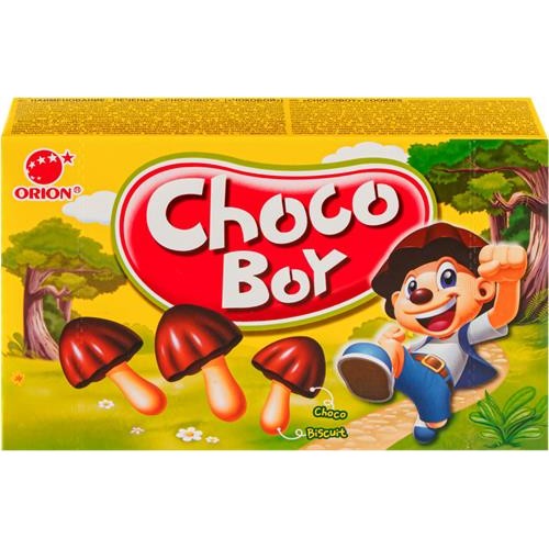 ORION Choco Boy Бисквит с шоколадом - это настоящее удовольствие для сладкоежек всех возрастов! Этот товар, продающийся в , отличается не только своим неповторимым вкусом, но и уникальной формой в виде грибка.