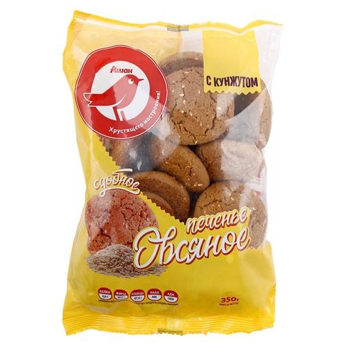 Печенье овсяное АШАН Красная птица с кунжутом, 350 г (kastd) в магазинах Ашан