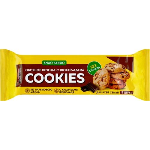 Печенье овсяное SNAQ FABRIQ с шоколадом, без сахара, 180г в магазинах Лента