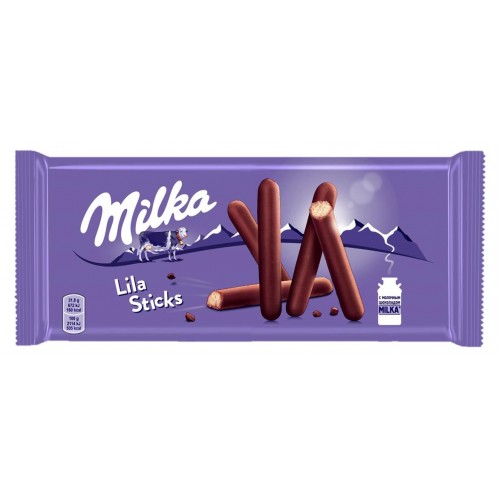 Печенье-палочки Milka Lila Sticks покрытое молочным шоколадом, 112 г (kastd) в магазинах Ашан