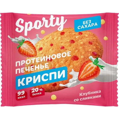 Печенье протеиновое SPORTY Криспи Клубника со сливками, без сахара, 30г в магазинах Лента