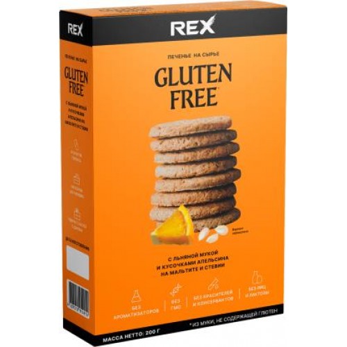 Печенье Rex Protein льняное апельсин 200 г - это вкусный и здоровый продукт, который идеально подходит для всех, кто следит за своим питанием и старается избегать употребления сахара, глютена и искусственных добавок.