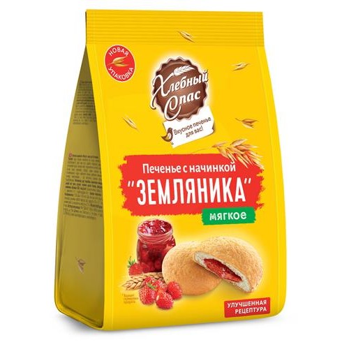 Печенье с начинкой Хлебный Спас земляника, 200 г (kastd) в магазинах Ашан
