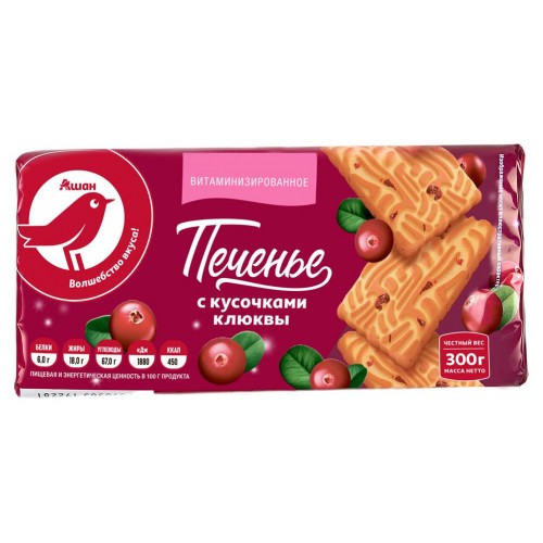 Печенье сахарное АШАН Красная птица с клюквой, 300 г (kastd) в магазинах Ашан