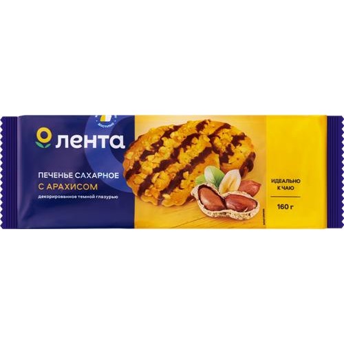 Печенье сахарное ЛЕНТА с арахисом декорированное темной глазурью, 160г в магазинах Лента