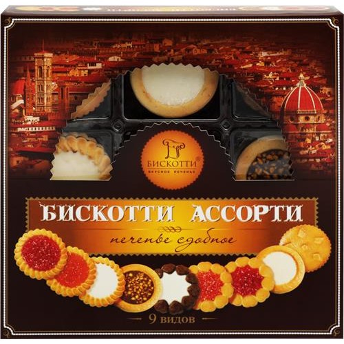 Печенье сдобное БИСКОТТИ Ассорти, 345г в магазинах Лента