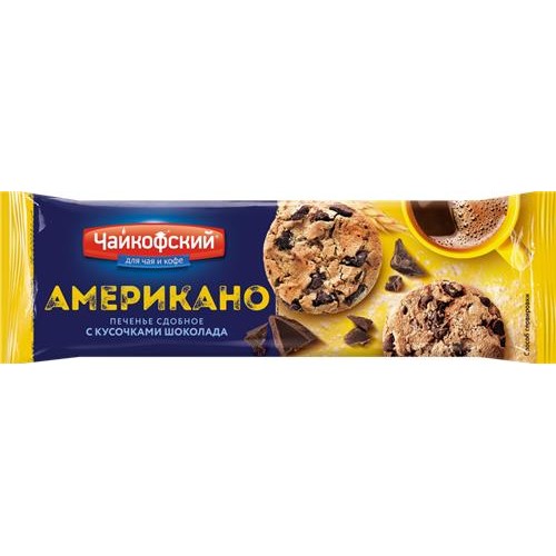 Печенье сдобное ЧАЙКОФСКИЙ Американо с кусочками шоколада, 145г в магазинах Лента