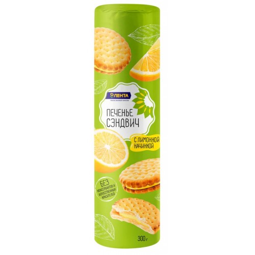 Печенье-сэндвич ЛЕНТА с лимонной начинкой, 300г в магазинах Лента