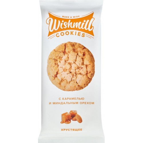 Печенье WISHMILL Кукис, хрустящее, с карамелью и миндальным орехом, 180г в магазинах Лента