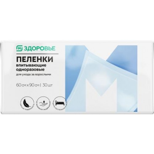 Пеленки «Магнит здоровье» одноразовые, 30 штук в упаковке, размером 60*90 см. Эти пеленки идеально подходят для защиты поверхностей от случайных протеканий или для обеспечения комфорта и гигиены при смене подгузников, проведении гигиенических процедур или для использования в медицинских целях. Изготовлены из высококачественных материалов, они быстро впитывают влагу и помогают сохранить кожу сухой и здоровой. Эластичные края предотвращают протекание, а мягкий верхний слой обеспечивает комфорт.