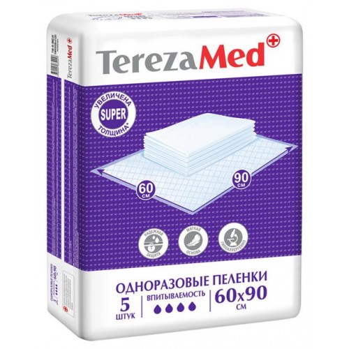 Пеленки одноразовые TerezaMed Super впитывающие 60х90см, 5шт в магазинах Перекресток