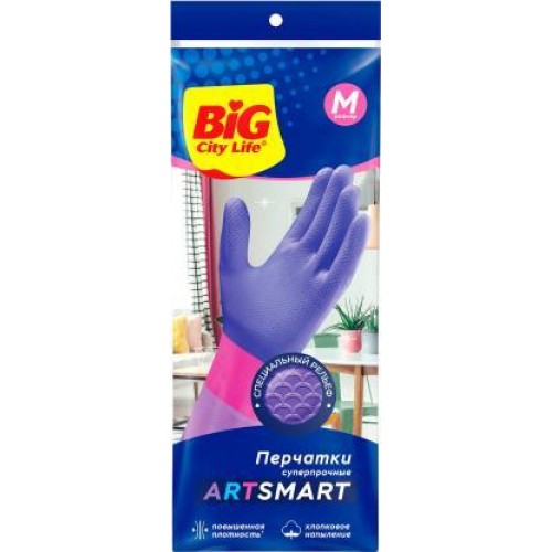 Перчатки латексные Big City Life с хлопковым напылением М в магазинах Магнит