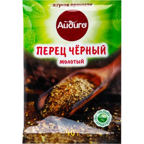 Перец черный АЙДИГО молотый, 40г в магазинах Лента