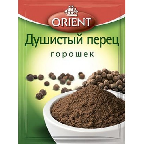 Pepper Orient Allspice peas 10g is a perfect addition to any dish, enhancing the flavor and aroma. The large brown peas, despite their peppery spiciness, resemble the aroma of both cloves and cinnamon, nutmeg, and even mint, but still do not resemble any of these spices. The grains, in their entirety, ennoble meat dishes, giving them a gamey flavor (try throwing at least five of them into a bucket of jelly - you»ll immediately appreciate it). It is also very good in any vegetable preserves and marinades, especially in those where, in addition to vinegar, vegetable oil is added, as its aromatic substances dissolve better in fats than in water. However, its main use is in mixtures for gingerbread and mulled wines.