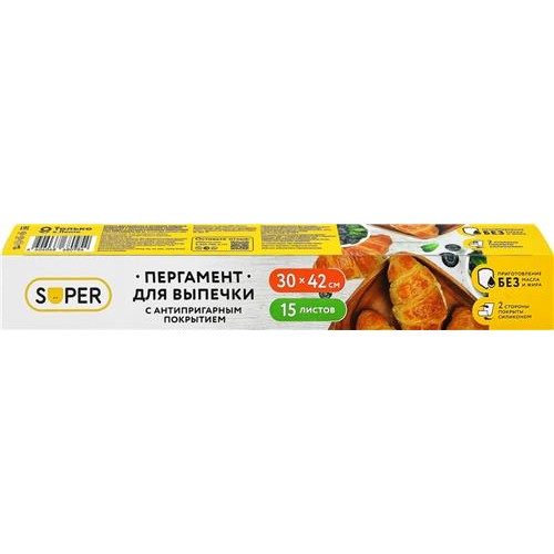 Пергамент для выпечки SUPER 30х42см, с антипригарным двусторонним покрытием, 15 листов в магазинах Лента
