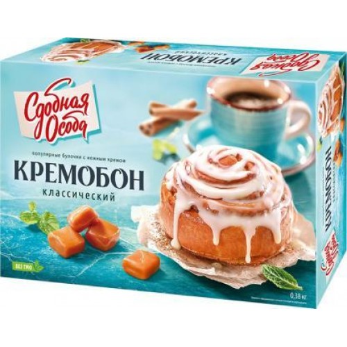 Пирог Черемушки «Кремобон Классический» весом 380 грамм представлен в виде синабонов - пышных булочек с корицей, пропитанных нежным белым кремом. Сверху пирог покрыт тонким слоем мягкого белого крема.