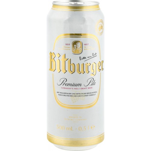Пиво светлое BITBURGER фильтрованное непастеризованное, 4,8%, ж/б, 0.5л в магазинах Лента
