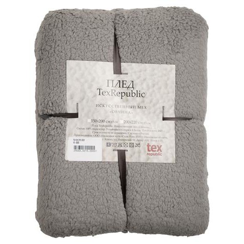 Плед шерпа серый, 150х200 см (kastd) в магазинах Ашан
