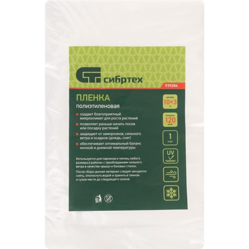 Пленка полиэтиленовая СИБРТЕХ 10x3м 120мкм 1-й сорт, Арт. 939284 в магазинах Лента