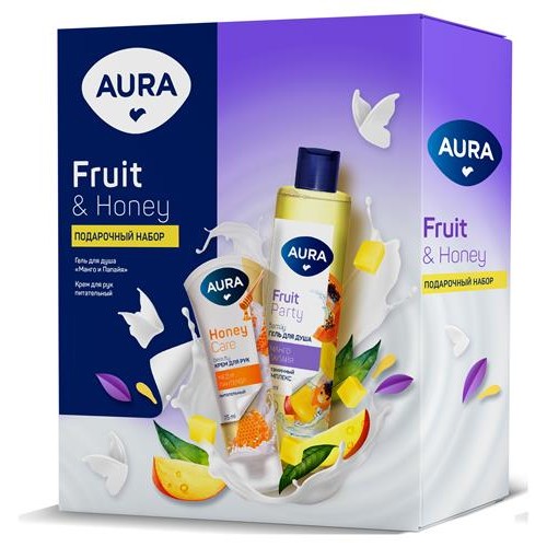 Подарочный набор Aura Fruit and Honey Гель для душа Манго и папайя 250мл+Крем для рук Питательный с D-пантенолом и экстрактом меда 75мл (kastd)